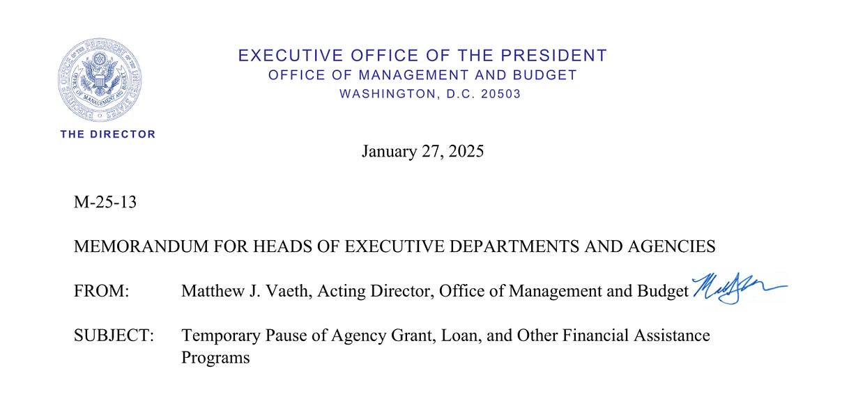 The agencies were also ordered to “temporarily pause all activities related to obligation or disbursement of all Federal financial assistance, and other relevant agency activities that may be implicated by the executive orders,” while the review is underway. That included programs such as “financial assistance for foreign aid, nongovernmental organizations, DEI, woke gender ideology, and the green new deal.” Federal aid spending was slated to come to a halt the next day, Tuesday. By Tuesday morning, there were reports that Medicaid portals were shut down. Access to funding that supported programs for people experiencing homelessness, Head Start, and Meals on Wheels was reported to be offline.